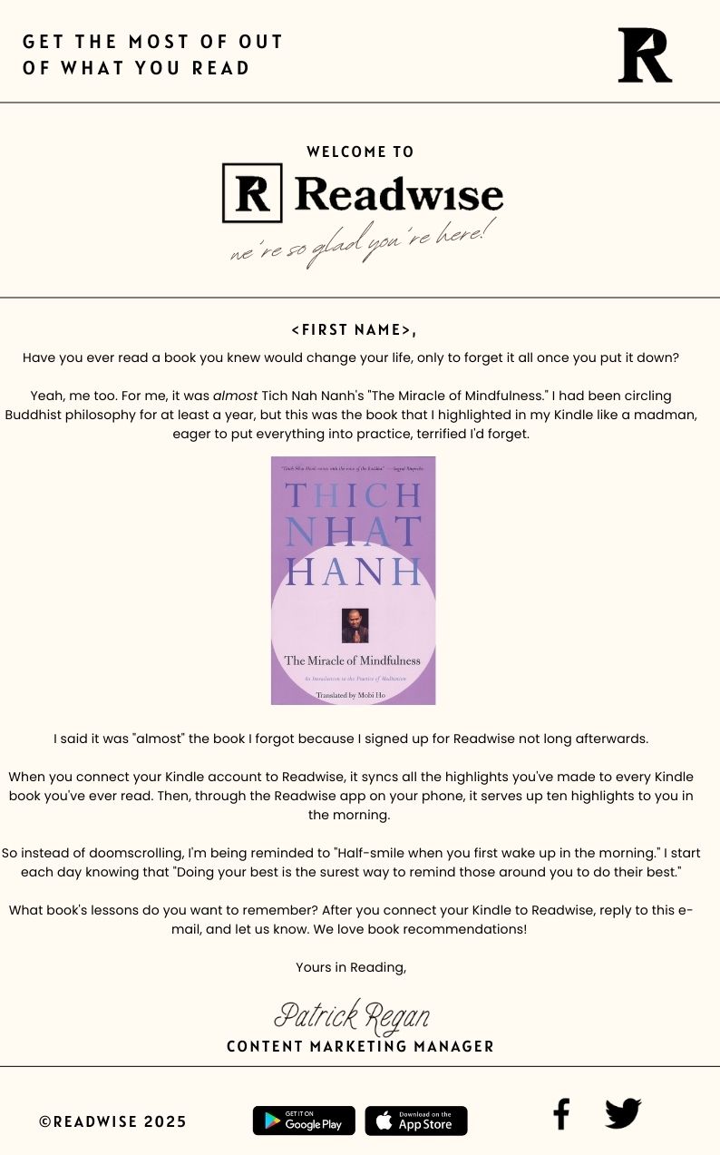 Readwise is one of my favorite apps. I’m willing to downsize a lot, but Readwise is mission-critical for me. However, I noticed that there’s no structured welcome sequence to help potential customers understand why it’s such a game-changer.